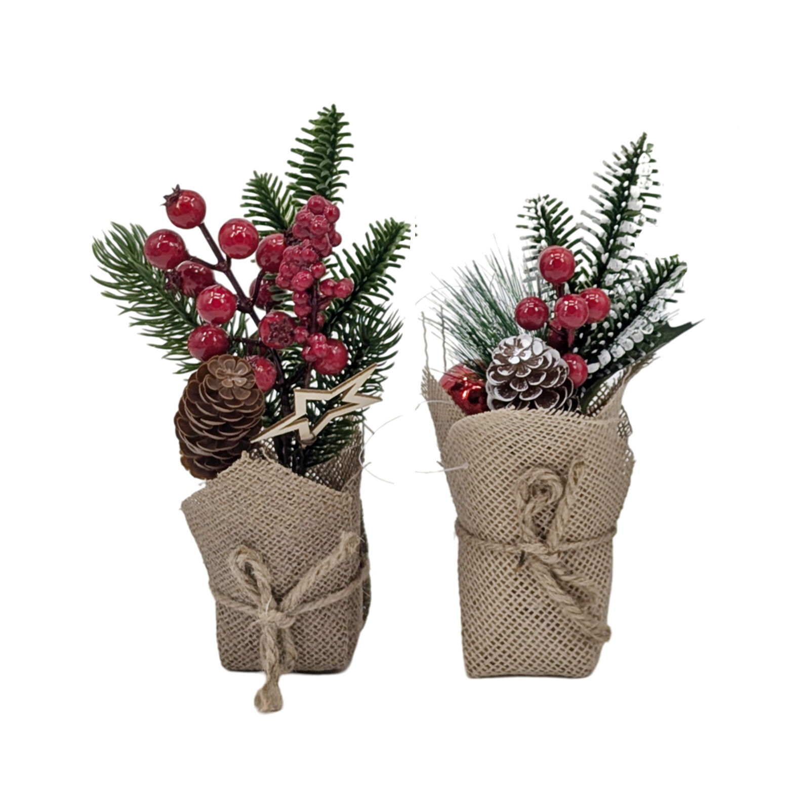 2x Christmas Berry Floral Plant Decoration in Burlap Pot 25cm Rustic Table Decor [Design: A]