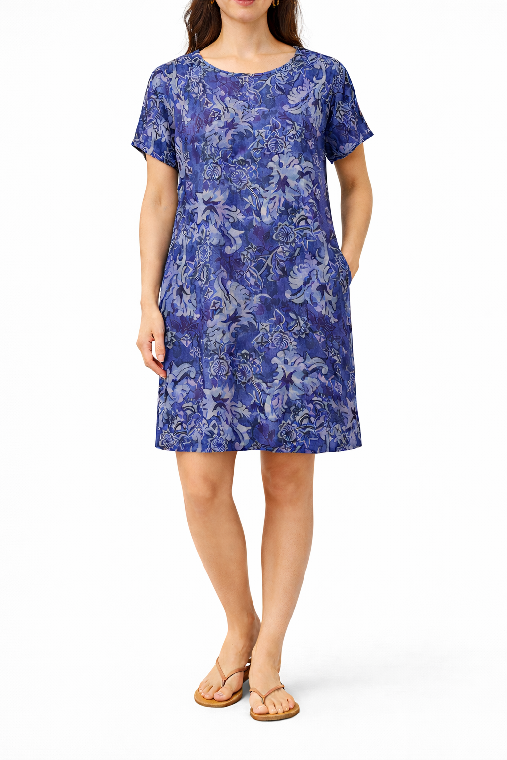 This easy-wear dress features a relaxed silhouette with a classic round neckline and short sleeves. Made from lightweight 100% viscose, it offers a soft, breathable feel with a natural drape for all-day comfort.