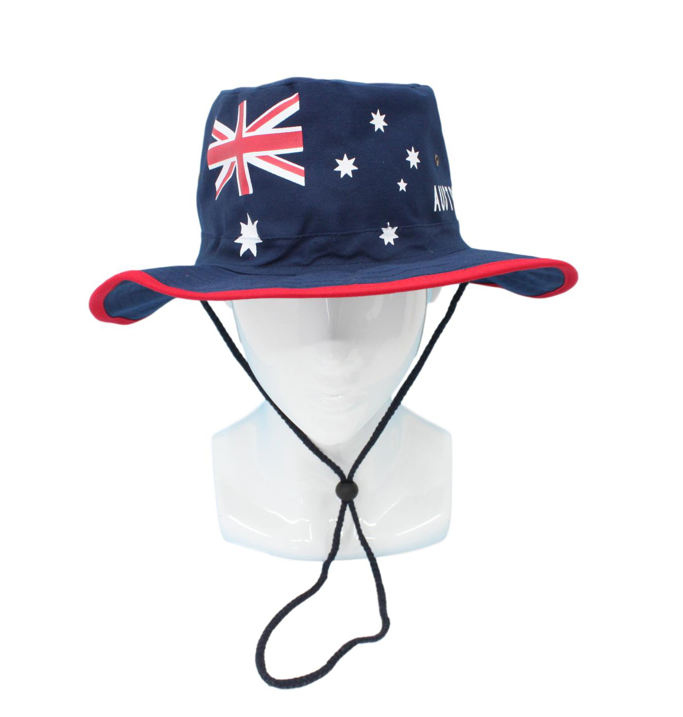 Australia Day Boonie Terry Bush Slouch Cotton Hat Outdoor Camping Kangaroo Souvenir [Size: 60cm] [Design: Flag Navy]