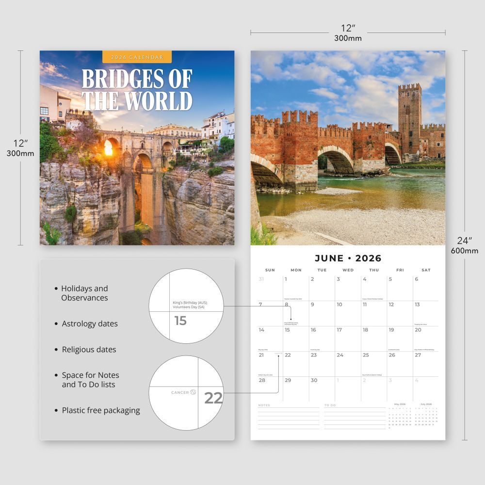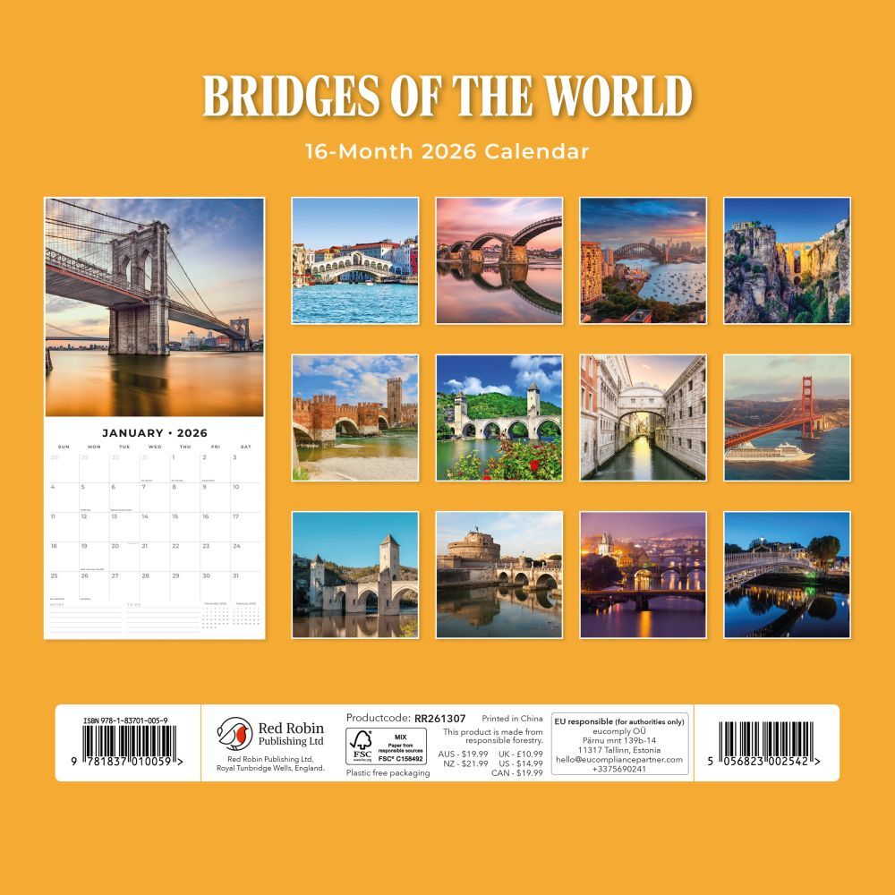Bridges of the World - 2026 Red Robin Square Wall Calendar Monthly Planner