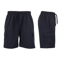 FIL Mens Cargo Shorts 5 Pocket Elastic Waist Drawstring Gym Casual Lightweight [Size: S] [Colour: Black]