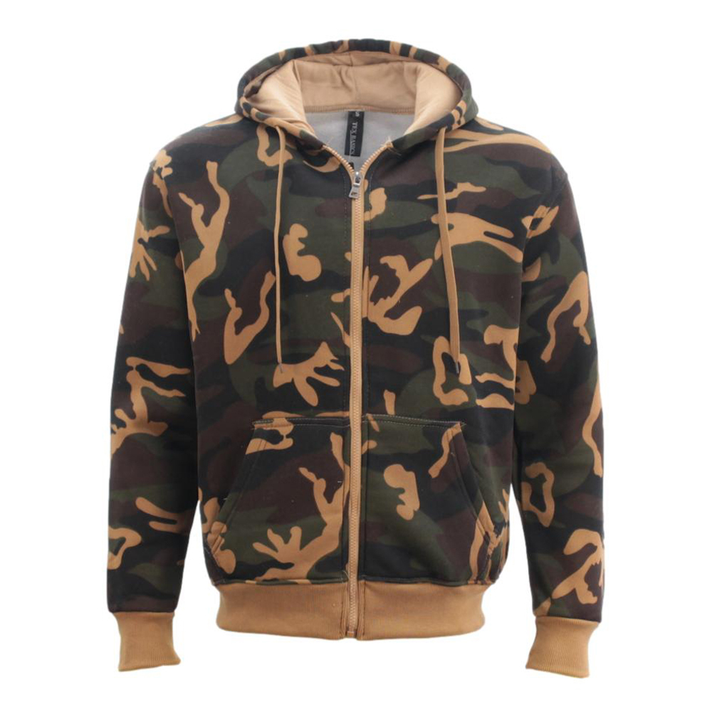FIL Men's Camo Zip up Hoodie Fleeced Camouflage Military Print Jacket [Size: M] [Design:Brown Camo]