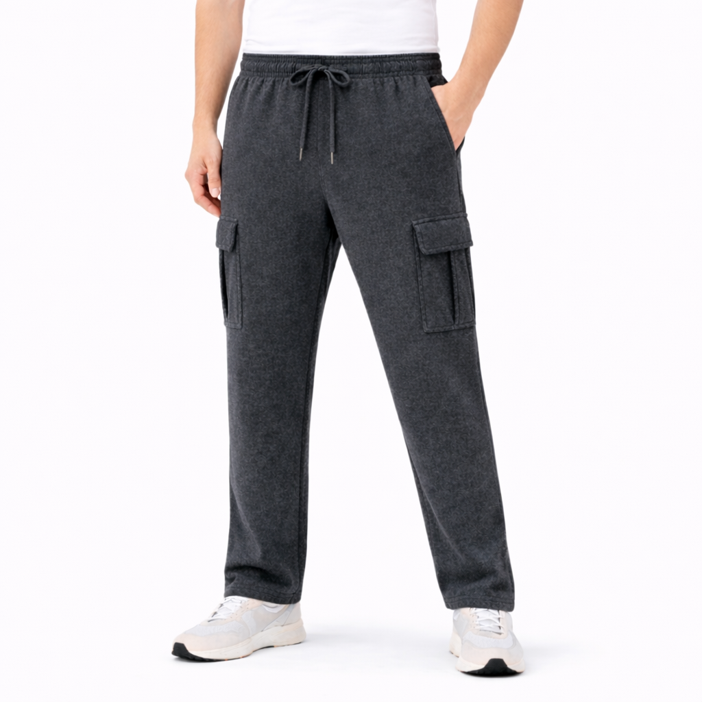 Stay warm and comfortable in these men's fleece track pants. Crafted from soft fleece fabric, they offer warmth and cosiness. Featuring cargo-style pockets for added storage, they're perfect for your everyday activities. Complete with an elastic waistband and drawstring for a personalized fit.