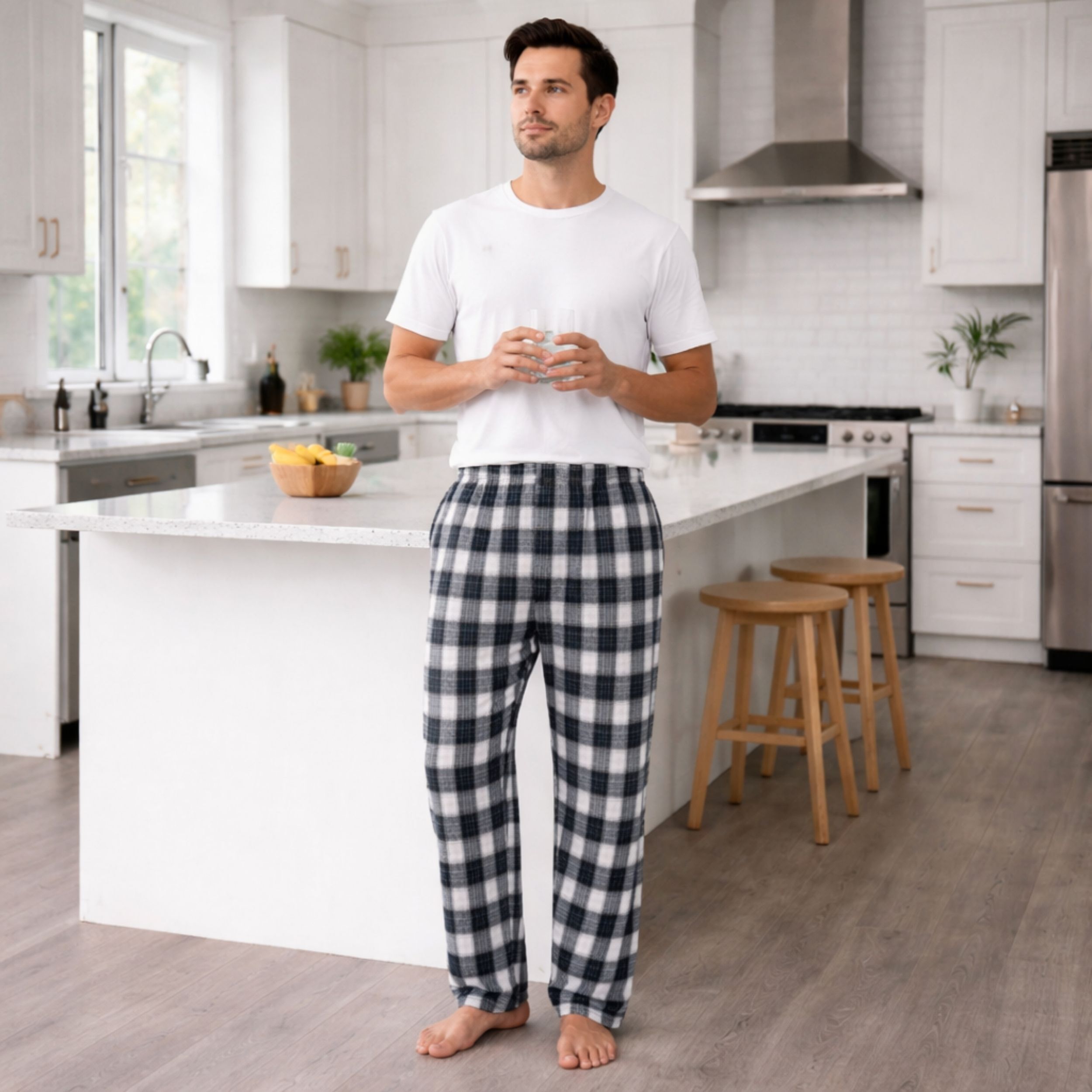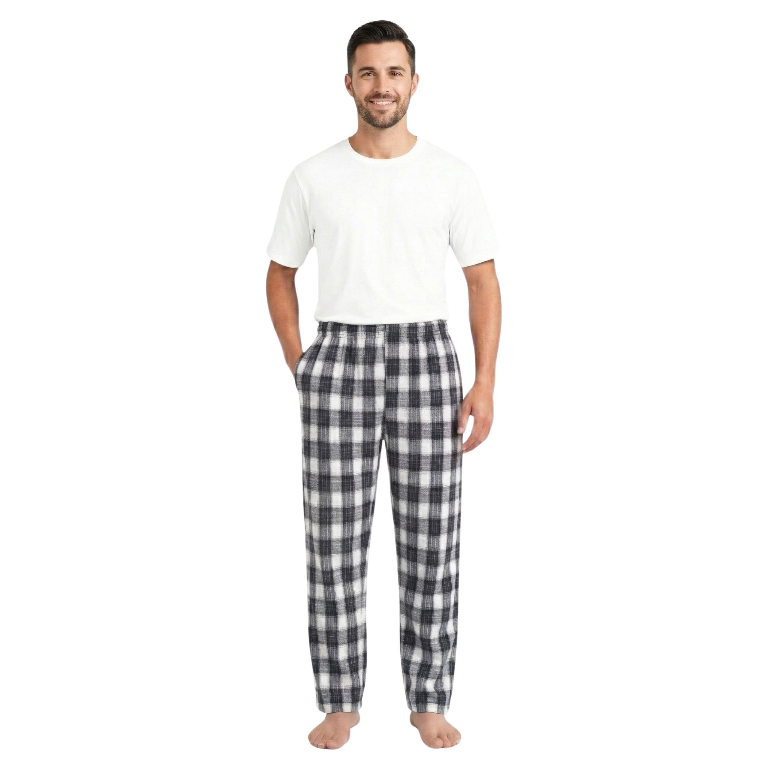 FIL Mens Flannel Sleep Pants Pyjama Lounge Sleepwear Soft Cotton Blend Check [Size: M] [Design: Black/White Check]