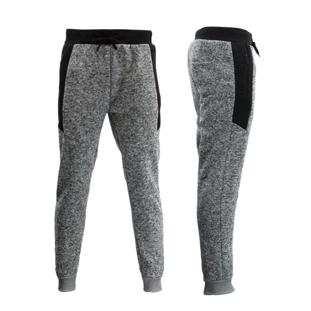 Men’s Cuffed Fleece Track Pants w Zip Pockets Marle Jogger Sweatpants [Size: 2XL] [Colour: Light Grey Marle]
