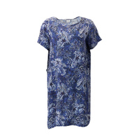 FIL Womens Short Sleeve Summer Dress w/ Pockets Floral Geometric Print Viscose [Size: 8] [Design:Blue Floral]
