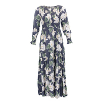 Features shirred bodice, bubble sleeve and elastic waist.