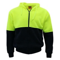 Hi-Vis Hooded Safety Workwear Fleece-lined Fleecy Full Zip Jumper Hoodie Jacket [Size: 2XL] [Colour: Fluro Yellow/Navy]