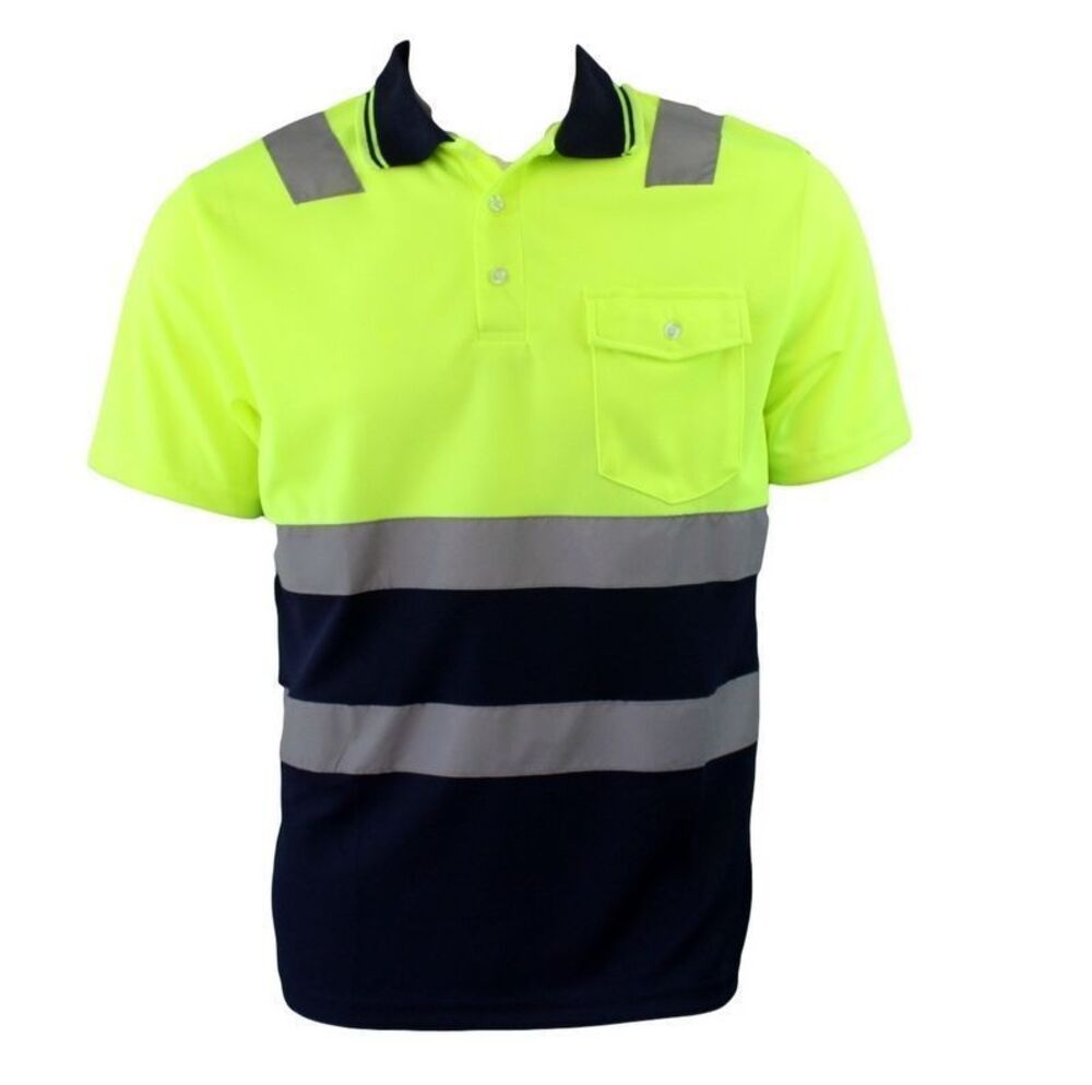 Hi-Vis Safety Workwear Short Sleeve Polo Shirt Top Reflective Tape Two tone [Colour: Lime] [Size: S]