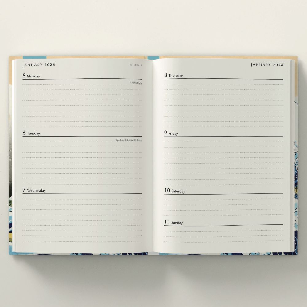 Hokusai - 2026 Red Robin A5 Padded Diary Planner Japanese Woodblock Prints