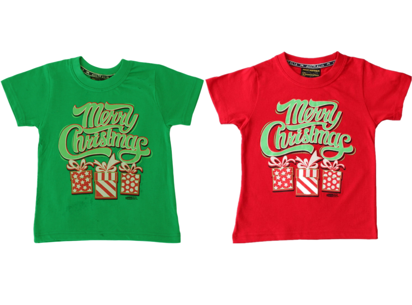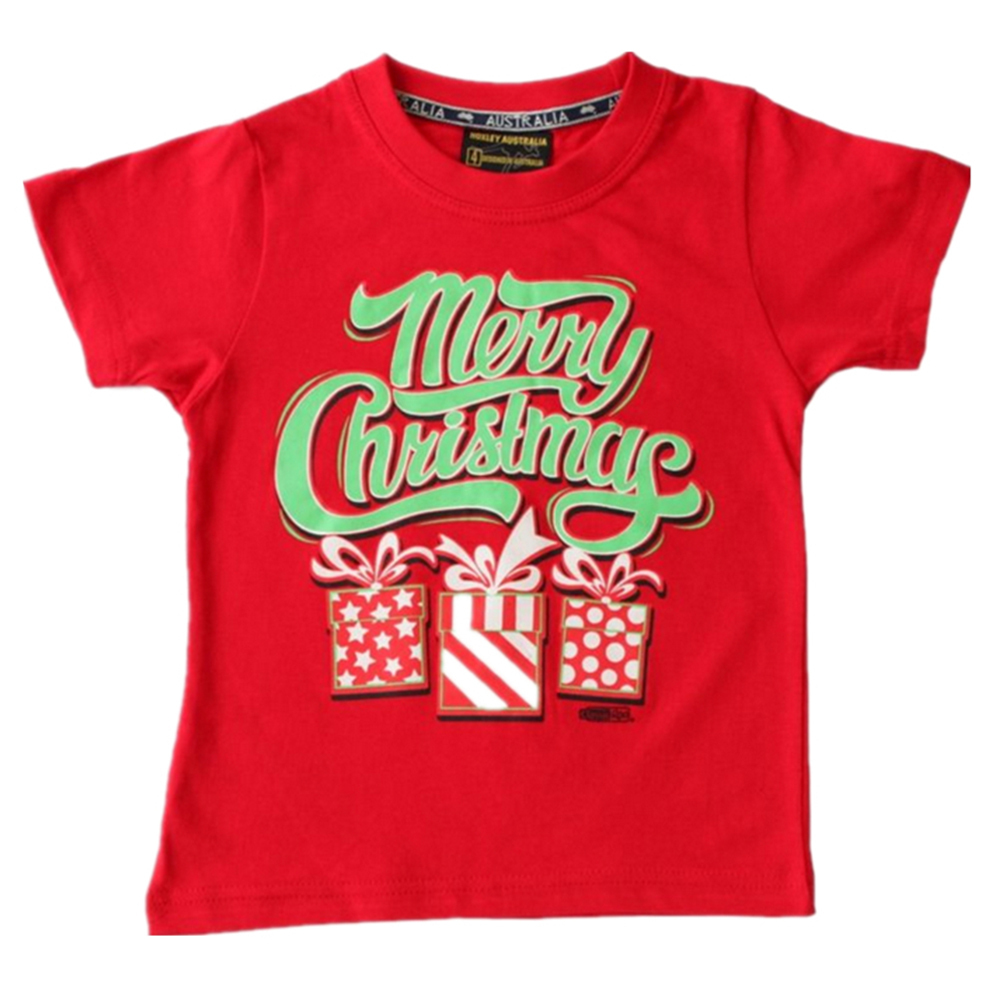 Kids Boys Girls Christmas Xmas T Shirt Tree 100% Cotton Red NEW [Design: Presents] [Size: 0] [Colour: Red]