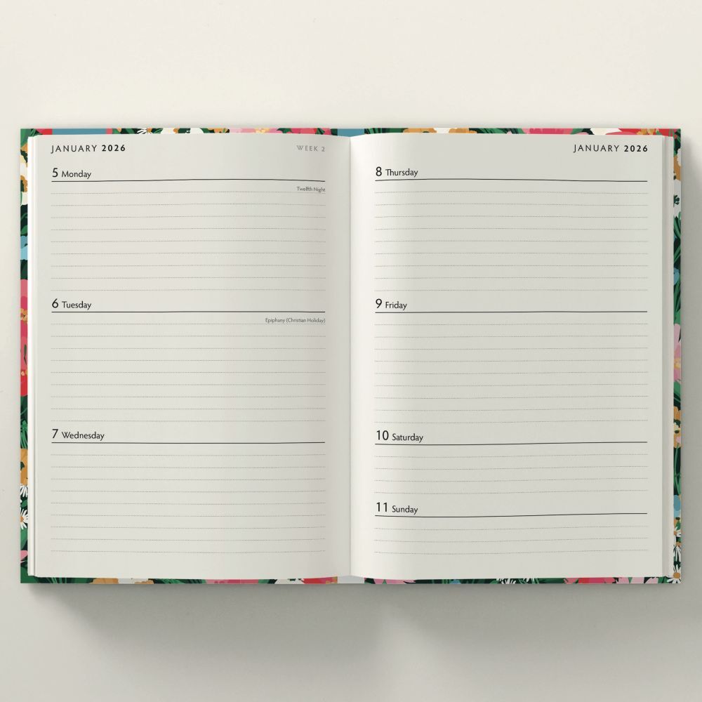 Meadow Flowers - 2026 Red Robin A5 Padded Diary Planner Countryside Floral Art