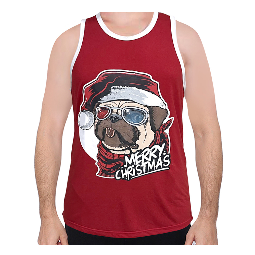Men's Cotton Christmas Singlet - Christmas Pug/Red [Size: L]