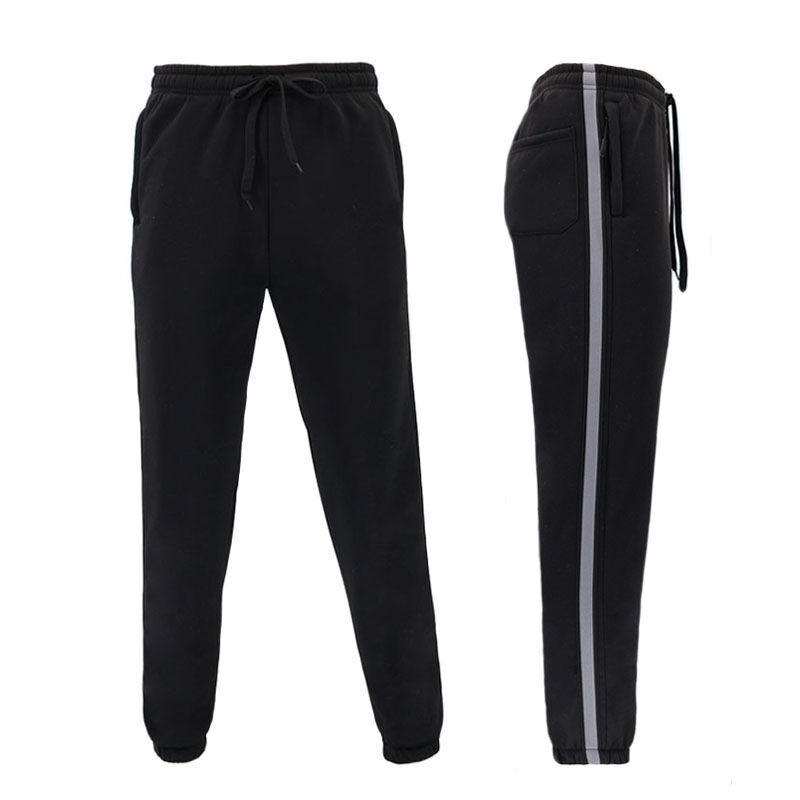Upgrade your casual wardrobe with these men's fleece-lined track pants - designed for comfort, warmth, and everyday wear. Made from soft, durable fabric with a cosy fleece interior, they feature an elastic waistband with adjustable drawstring and a tapered leg with elastic cuffs for a clean, modern fit. The contrast side stripe adds a sporty edge, while zippered side pockets and a back pocket offer secure storage.
