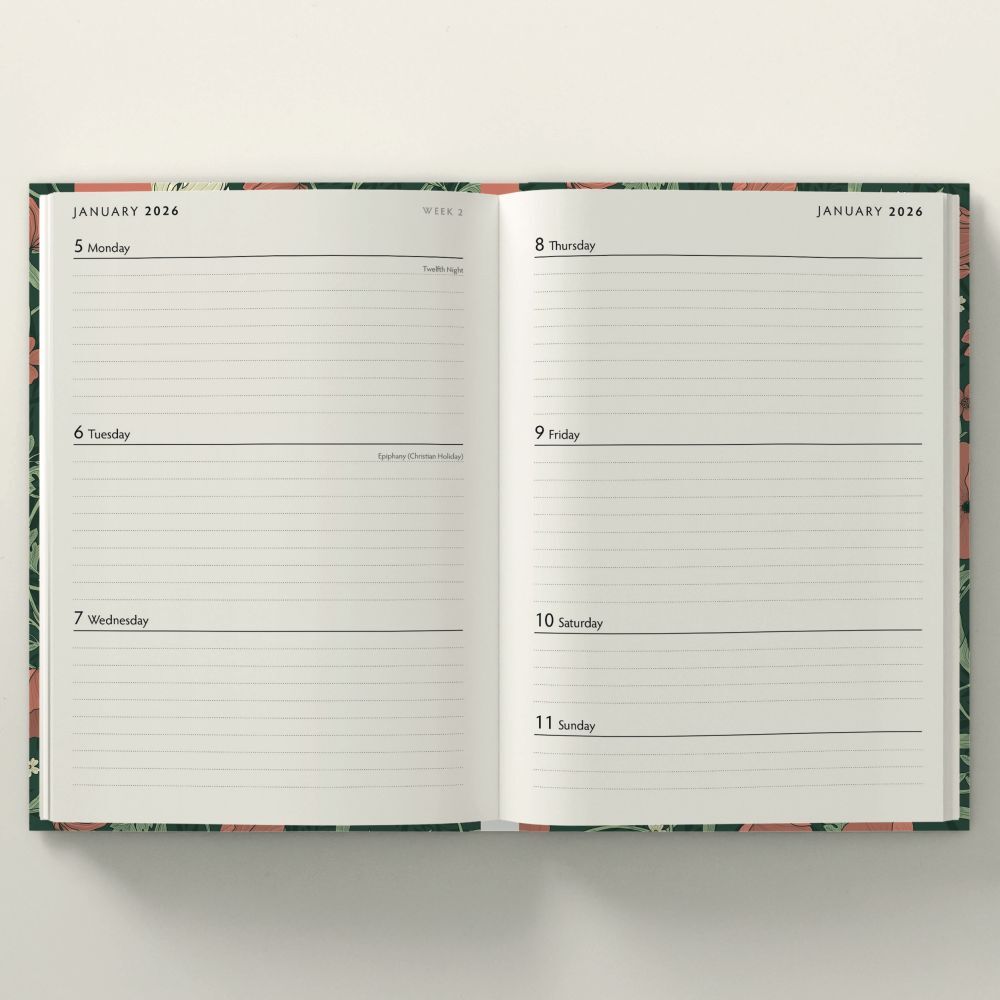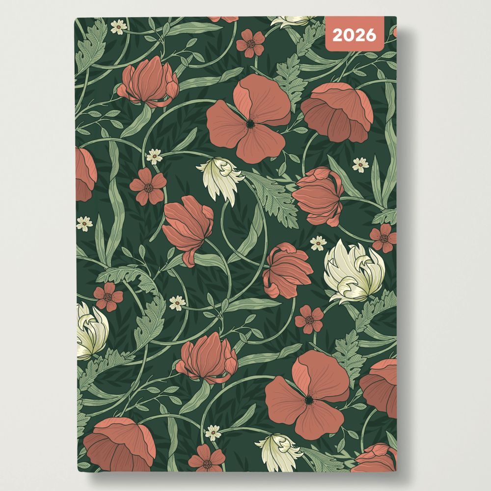 Morris Garden - 2026 Red Robin A5 Padded Diary Planner Arts & Crafts Design