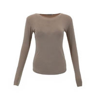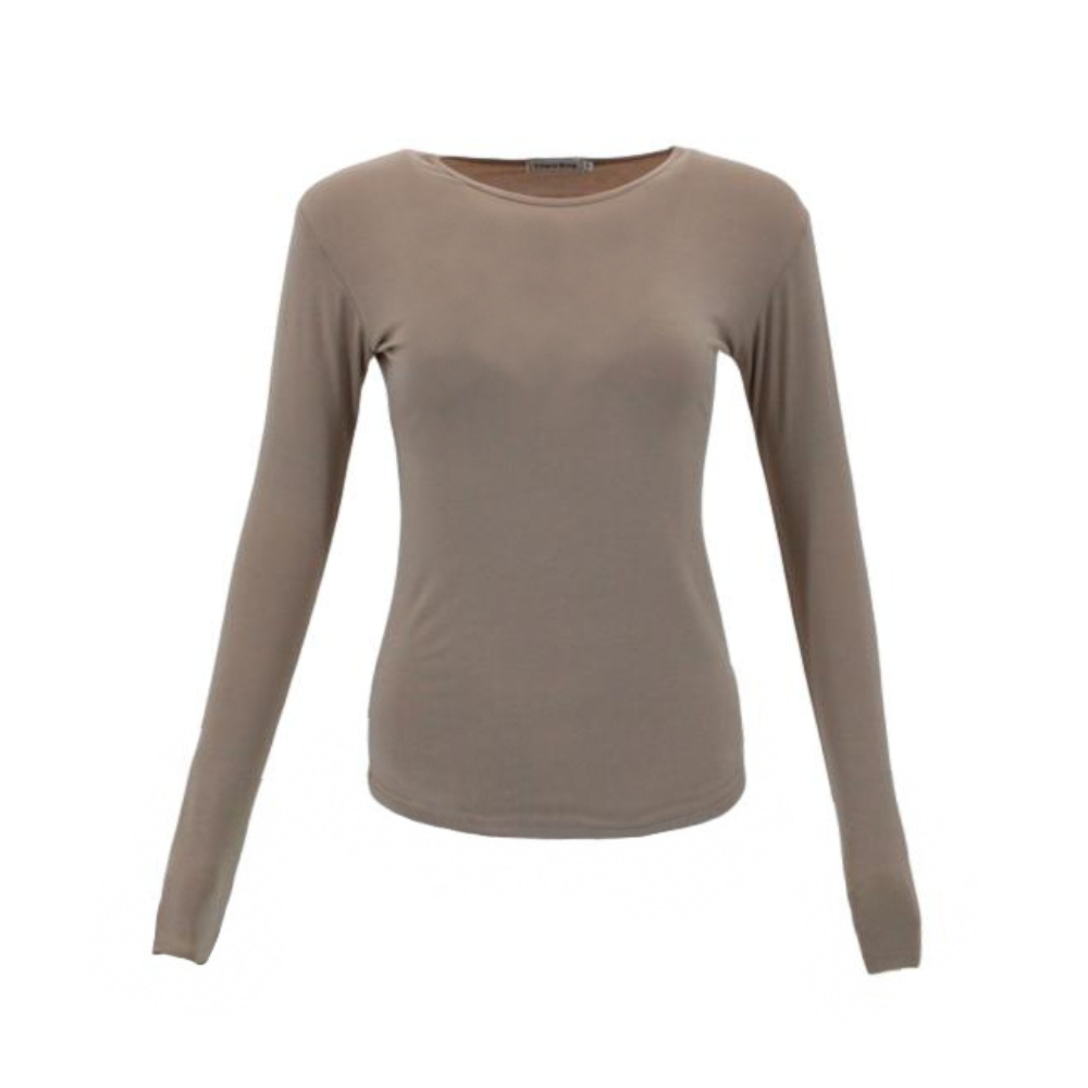 Women's Long Sleeve Crew Neck Soft Stretch Plain Colours Basic Tee T-Shirt [Size: 8] [Colour:Mocha]
