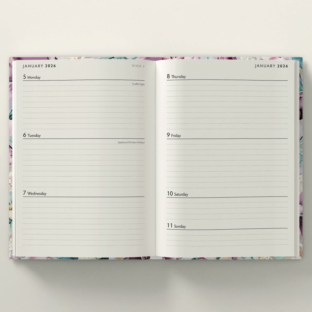 Peonies - 2026 Red Robin A5 Padded Diary Planner Elegant Floral Illustration