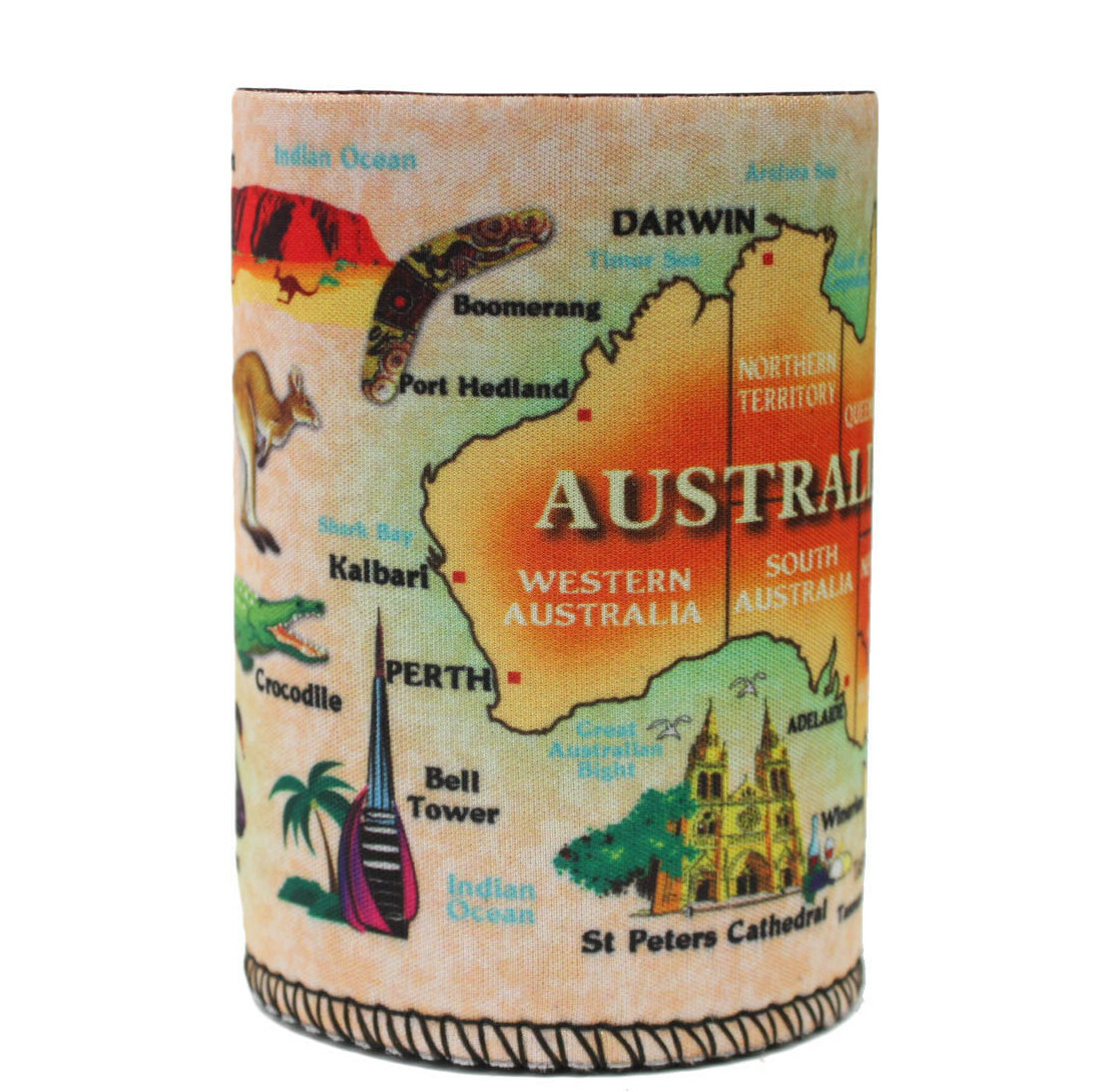 Stubby Holder Stubbie Can Beer Bottle Drink Cooler Australia Flag Funny Souvenir [Design: Australia - Map A]