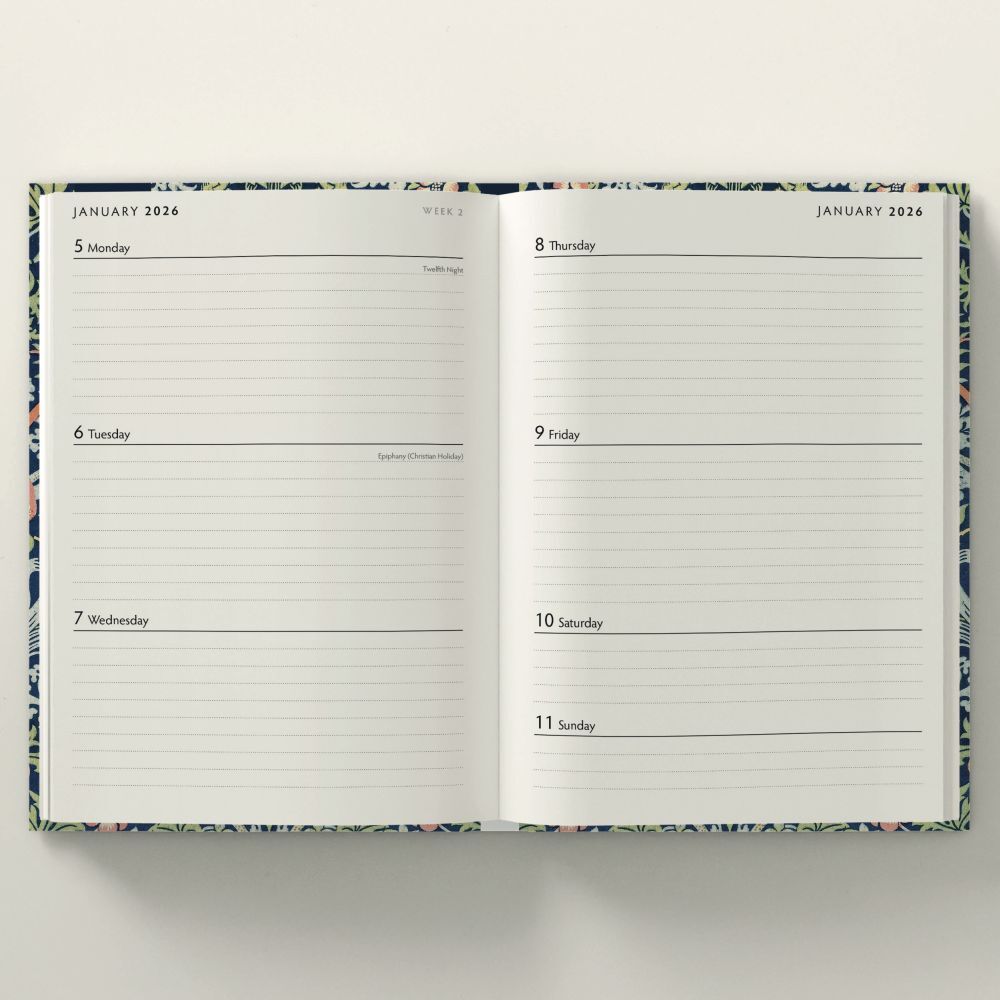 William Morris - 2026 Red Robin A5 Padded Diary Planner Arts & Crafts Pattern