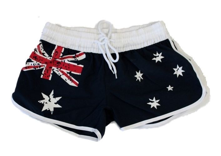 Womens Ladies Shorts Australian Australia Day Souvenir Beach Gym Shorts – Flag [Size: 16]