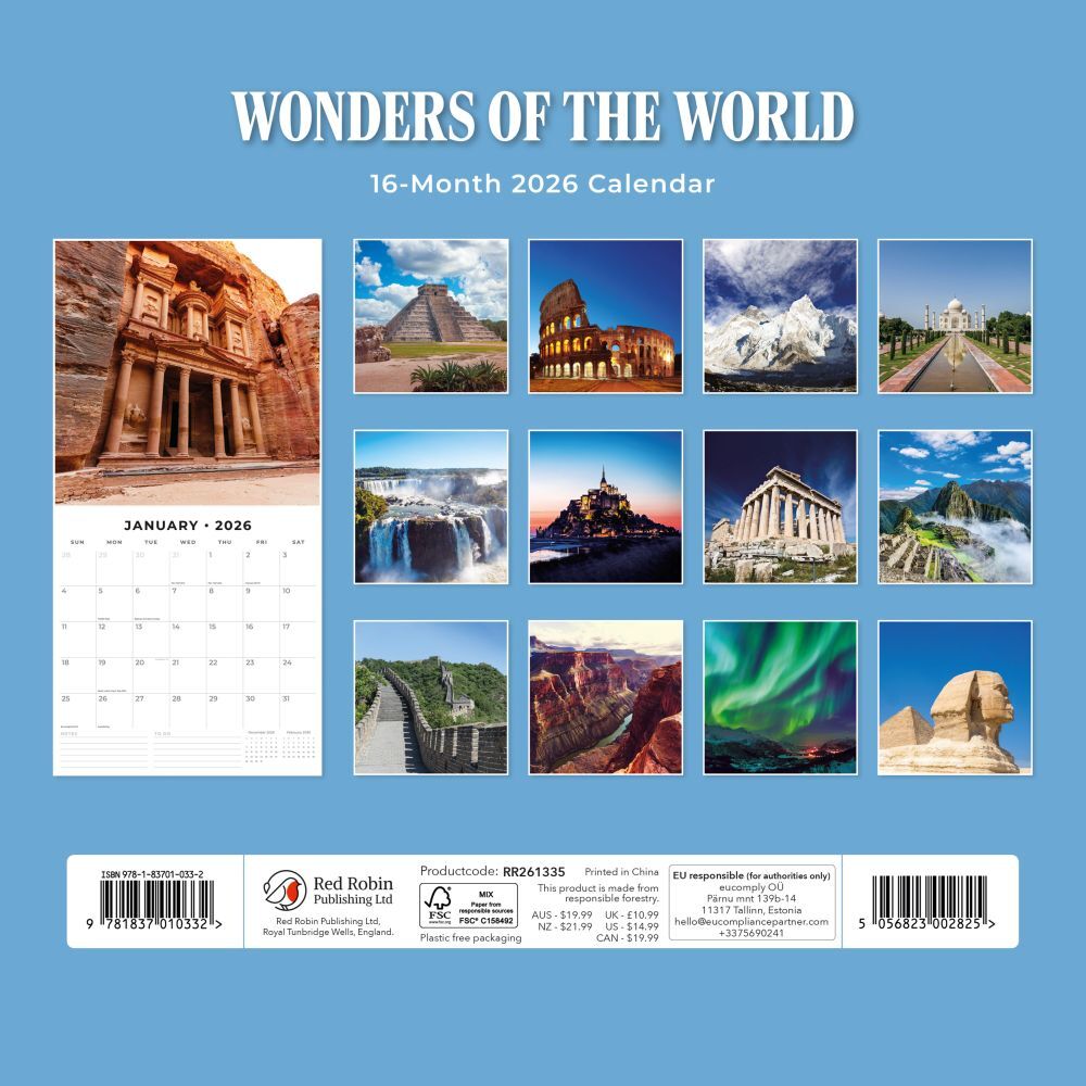 Wonders of the World - 2026 Red Robin Square Wall Calendar Monthly Planner